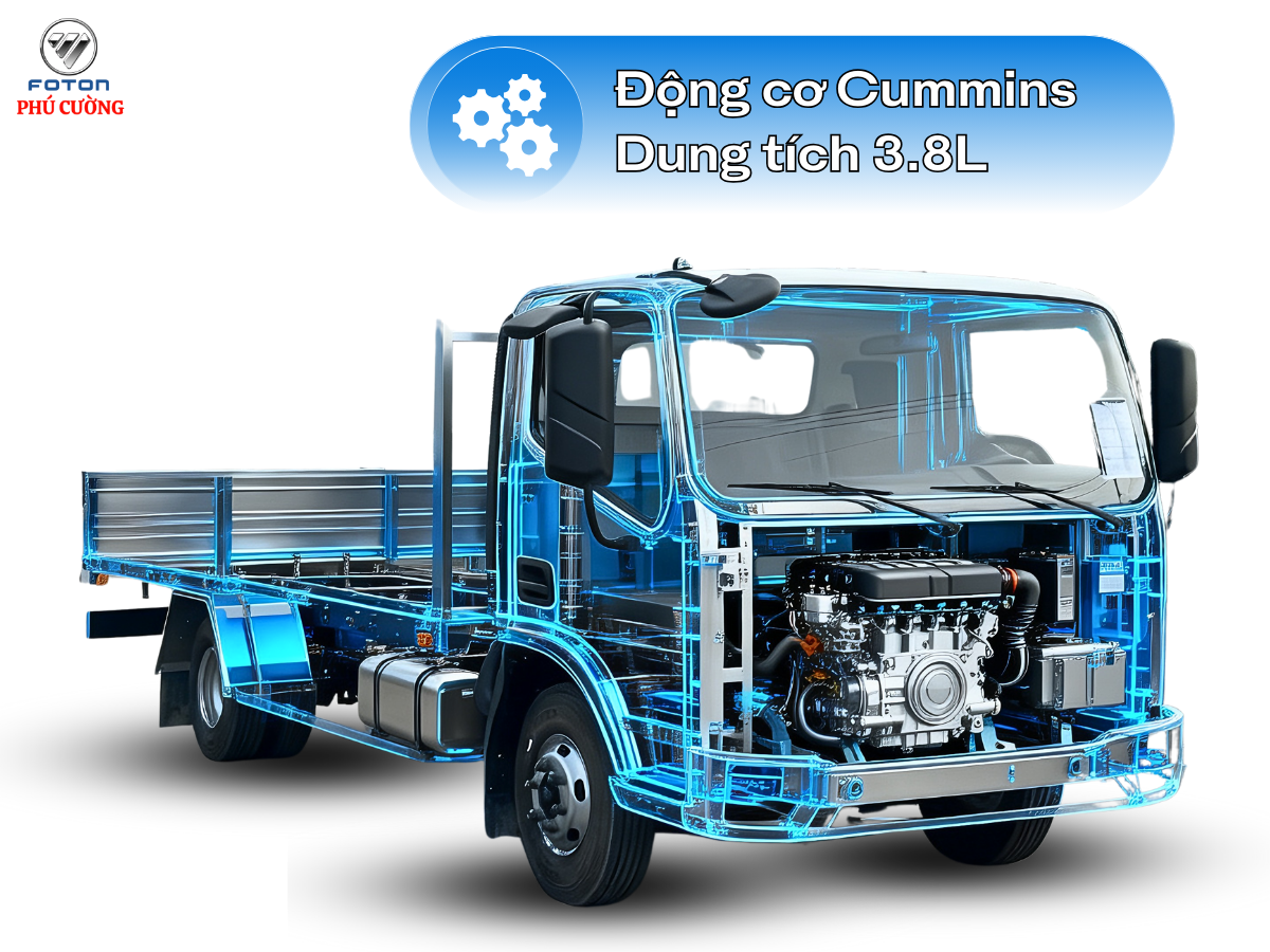 Trái tim của Foton Aumark S50 thùng lửng chính là động cơ Cummins F3.8 (Mỹ) đạt tiêu chuẩn khí thải Euro 5. Động cơ này không chỉ thân thiện với môi trường mà còn mang lại hiệu suất vận hành ấn tượng, độ bền bỉ cao, khả năng tiết kiệm nhiên liệu tối ưu và chi phí bảo dưỡng hợp lý.
