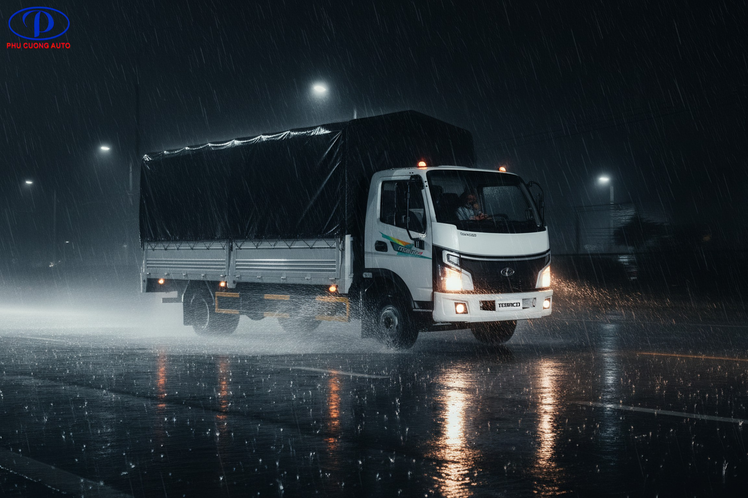Tera350 Plus thùng bạt được trang bị hệ thống chiếu sáng hiện đại, đảm bảo khả năng quan sát tốt trong mọi điều kiện thời tiết.